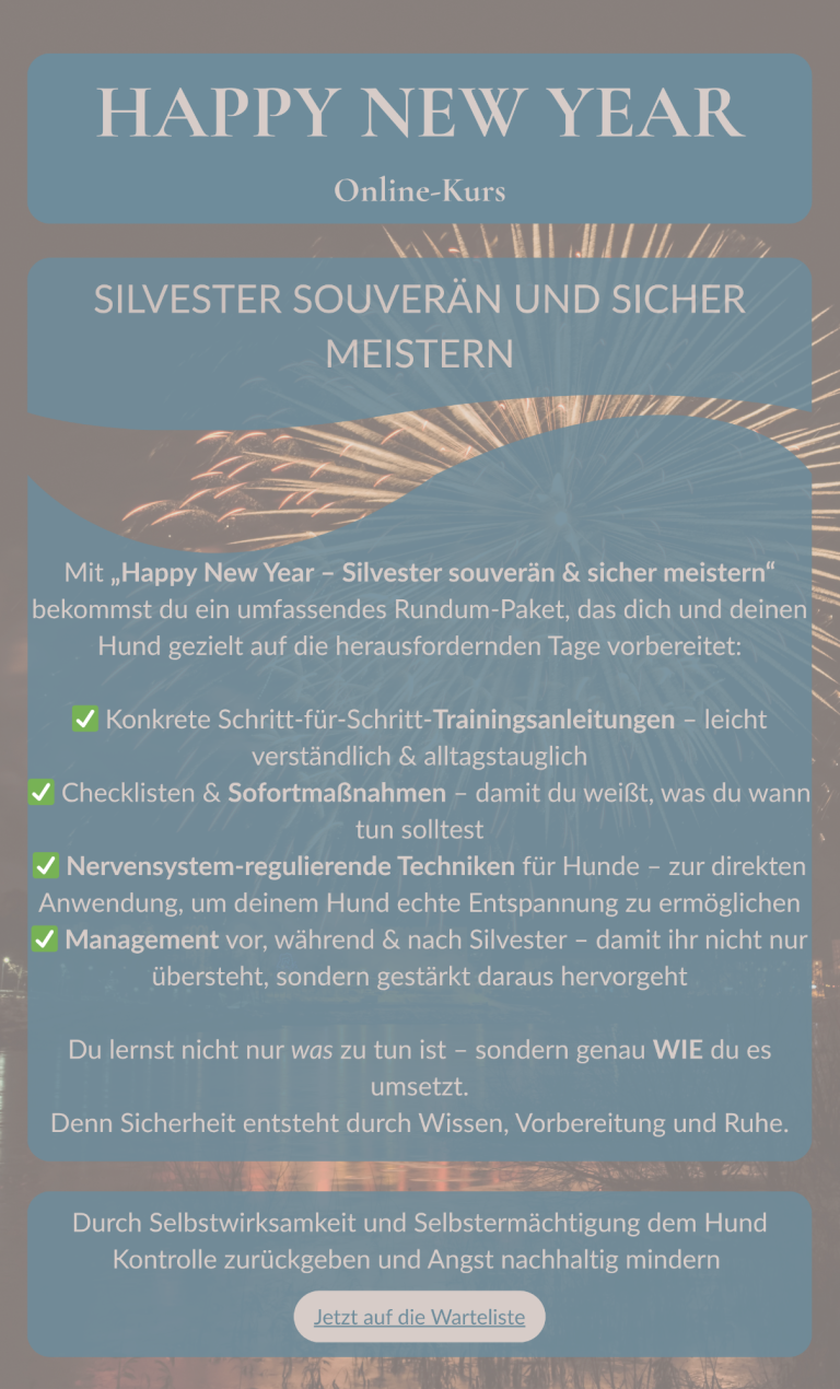 Das innere Erleben von Tieren analysieren, verstehen und praktisch darauf eingehen. Wie Tiere lernen, denken, handeln und Verhalten zu verstehen ist. Was das Nervensystem für eine Rolle spielt und warum Gelassenheit der Grundstein für alles ist. Ein Blick hinter die Psyche, rein in das Erleben des Tieres und das daraus entstehende Verhalten. Erkennen, was das Tier uns zeigt und wie man es in das Leben integrieren kann.